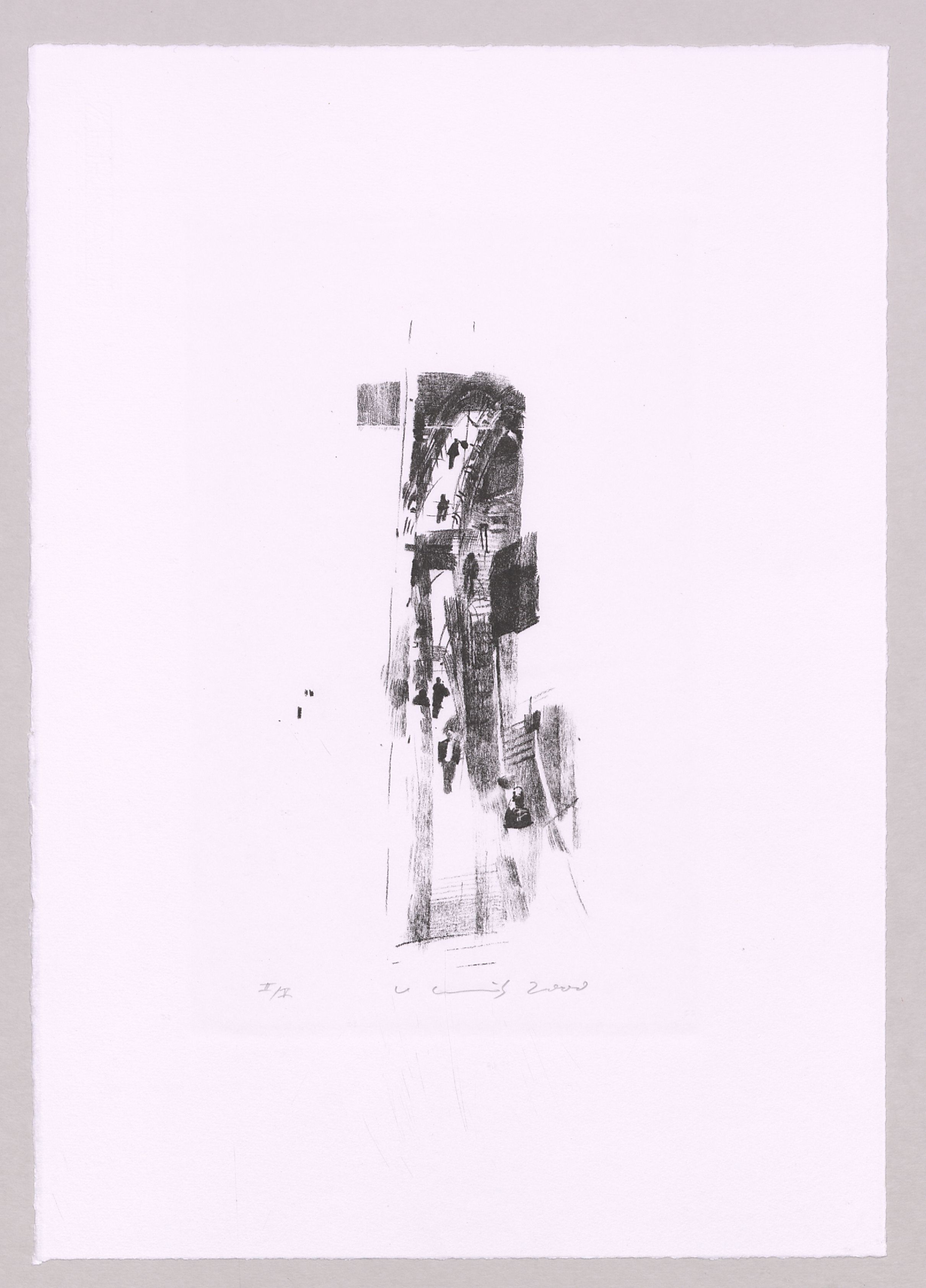 Lithographie; ca. 29 x 13 cm (Bild) bzw. 53,5 x 37,5 cm (Blatt). - Mit Bleistift datiert, numeriert (II/V) und signiert. - Gedruckt auf Büttenpapier. - MIT DIGITALAUFNAHME