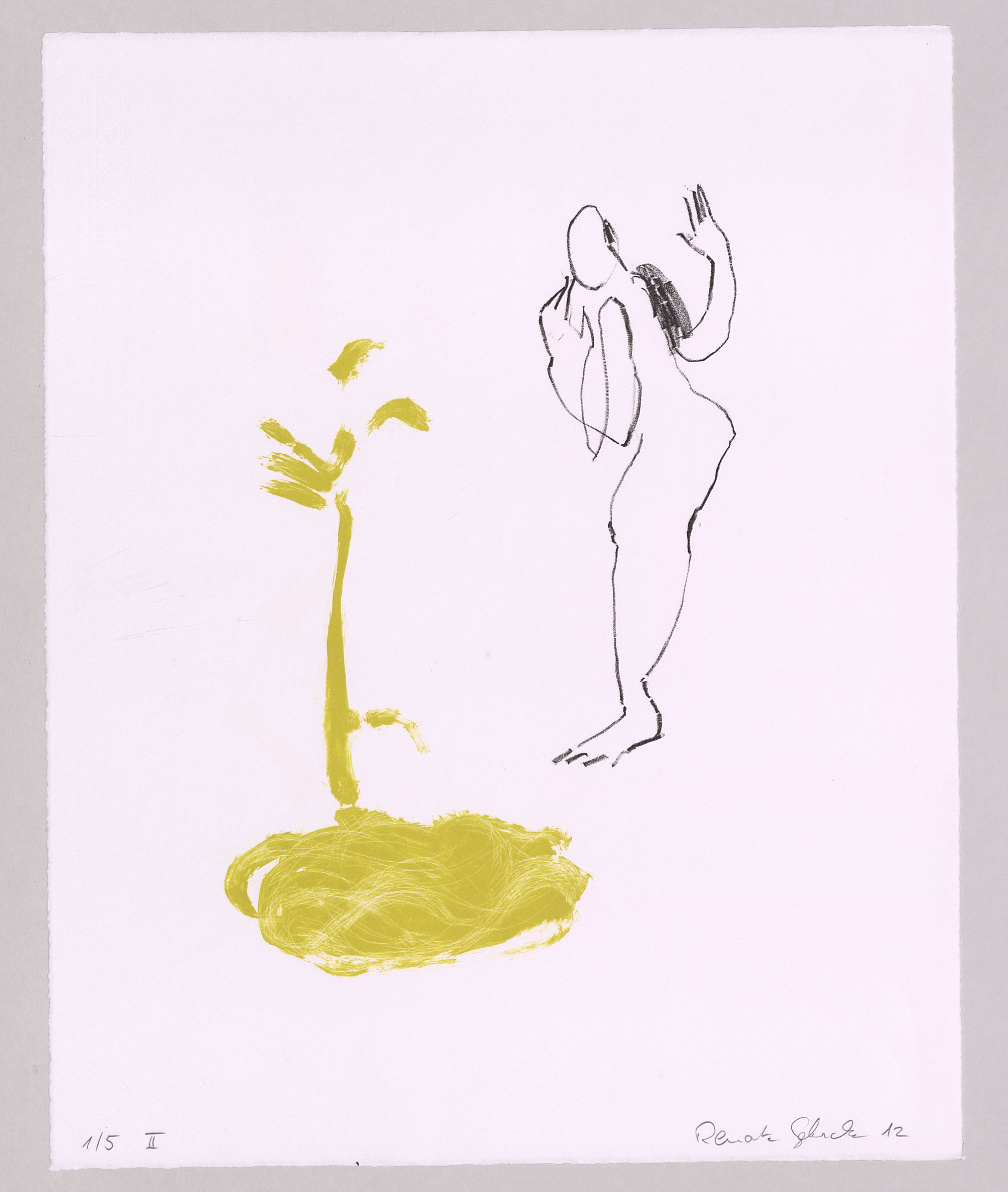 Lithographie (Kreide, Tusche, Gravur; 2 Farben); ca. 39,7 x 25,7 cm (Bild) bzw. 56,9 x 45,8 cm (Blatt). - Von der Künstlerin mit Bleistift bezeichnet (auf der Rückseite), datiert, numeriert (1/5 II) und signiert. - MIT DIGITALAUFNAHME