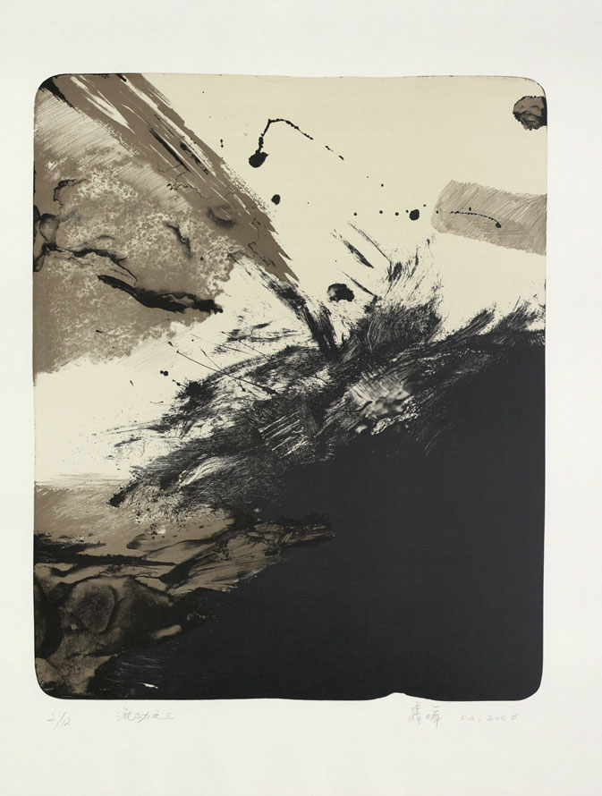 Lithographie (Asphaltum, Kreide - 3 Farben); ca. 59 x 48,5 cm. - Vom Künstler mit Bleistift bezeichnet, datiert, numeriert (2/12) und signiert. - Titel und Künstlerangabe auf der Vorderseite in chinesischen Schriftzeichen, Titel auf der Rückseite auf deutsch wiederholt. - MIT DIGITALAUFNAHME
