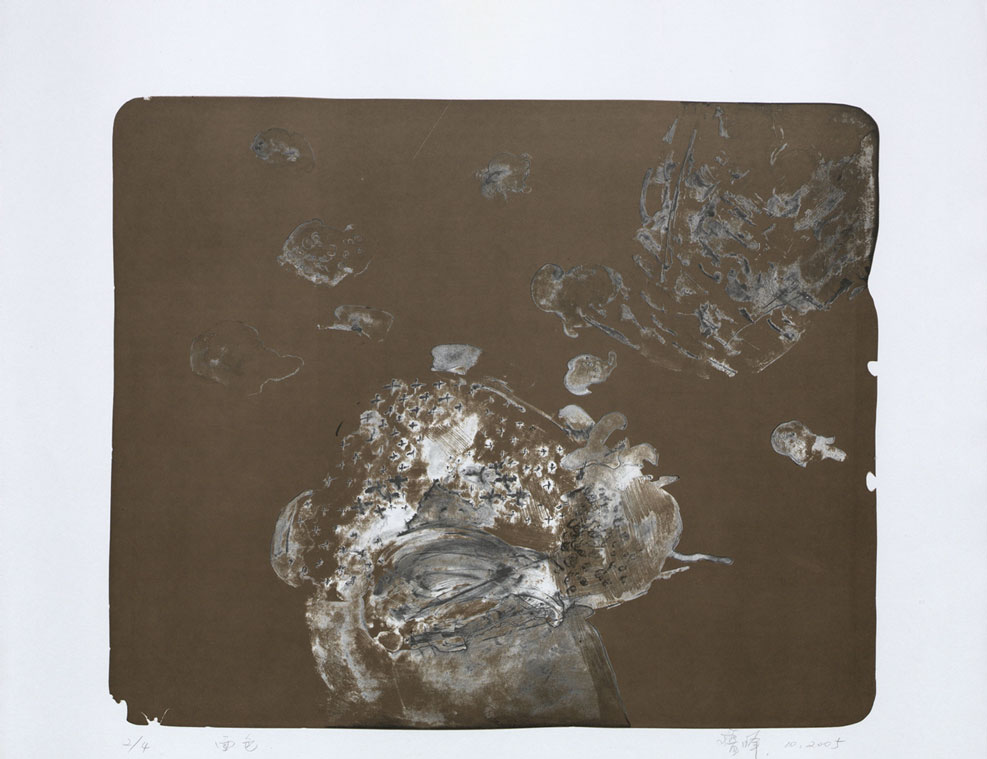 Lithographie (Asphaltum, Kreide, Tusche); ca. 48,5 x 59 cm. - Vom Künstler mit Bleistift bezeichnet, datiert, numeriert (2/4) und signiert. - Titel und Künstlerangabe auf der Vorderseite in chinesischen Schriftzeichen, Titel auf der Rückseite auf deutsch wiederholt. - MIT DIGITALAUFNAHME
