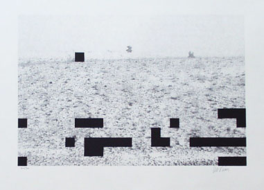 Computerdruck, schwarz-weiß, grob gerastert, mit Lithographie (schwarze Balken) überdruckt; 26,6 x 39,8 cm. - Vom Künstler mit Bleistift numeriert (20/30) und signiert. - MIT DIGITALAUFNAHME