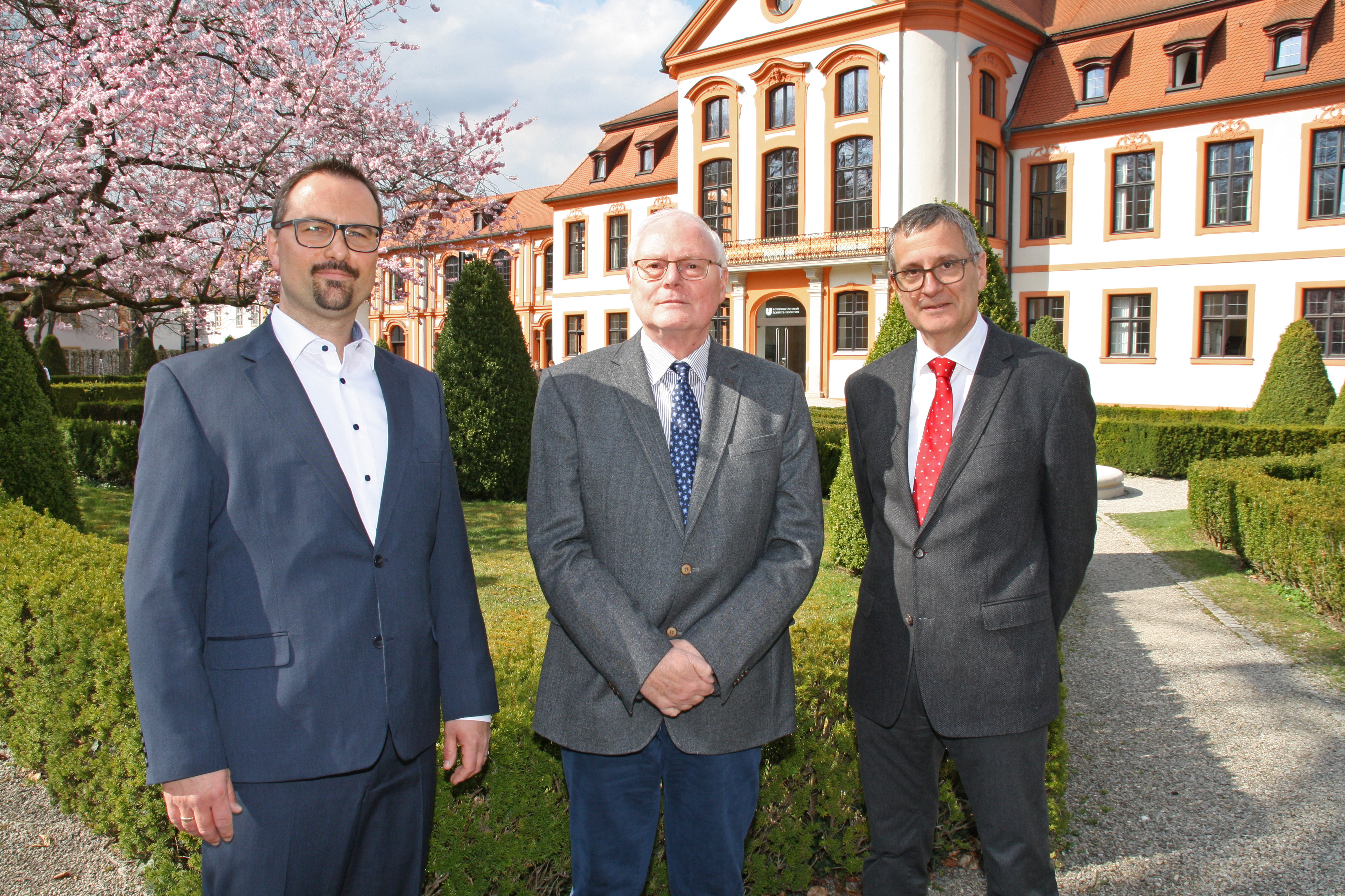(v.l.) Prof. Dr. Thomas Hoffmann (Dekan der Sprach- und Literaturwissenschaftlichen Fakultät) gemeinsam mit Honorarprofessor Dr. Friedrich Heberlein und Prof. Dr. Bardo Maria Gauly (Lehrstuhl für Klassische Philologie). (Foto: Schulte Strathaus/upd)
