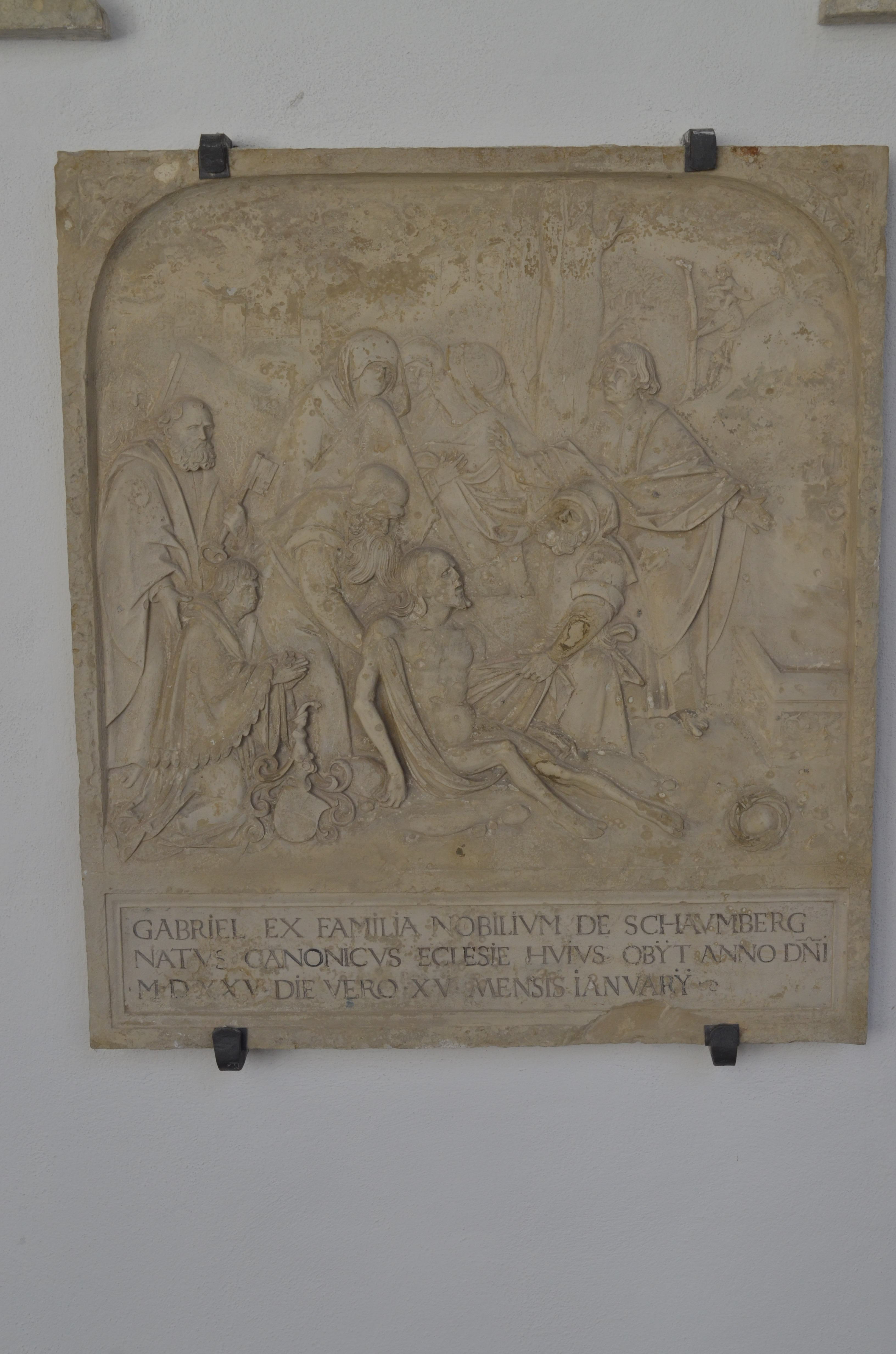 BABRIEL EX FAMILIA NOBILIUM DE SCHAUMBERG / NATUS CANONICUS ECLESIE HUIUS OBYT ANNO DNI / MDXXV DIE VERO XV MENSIS IANUARY.