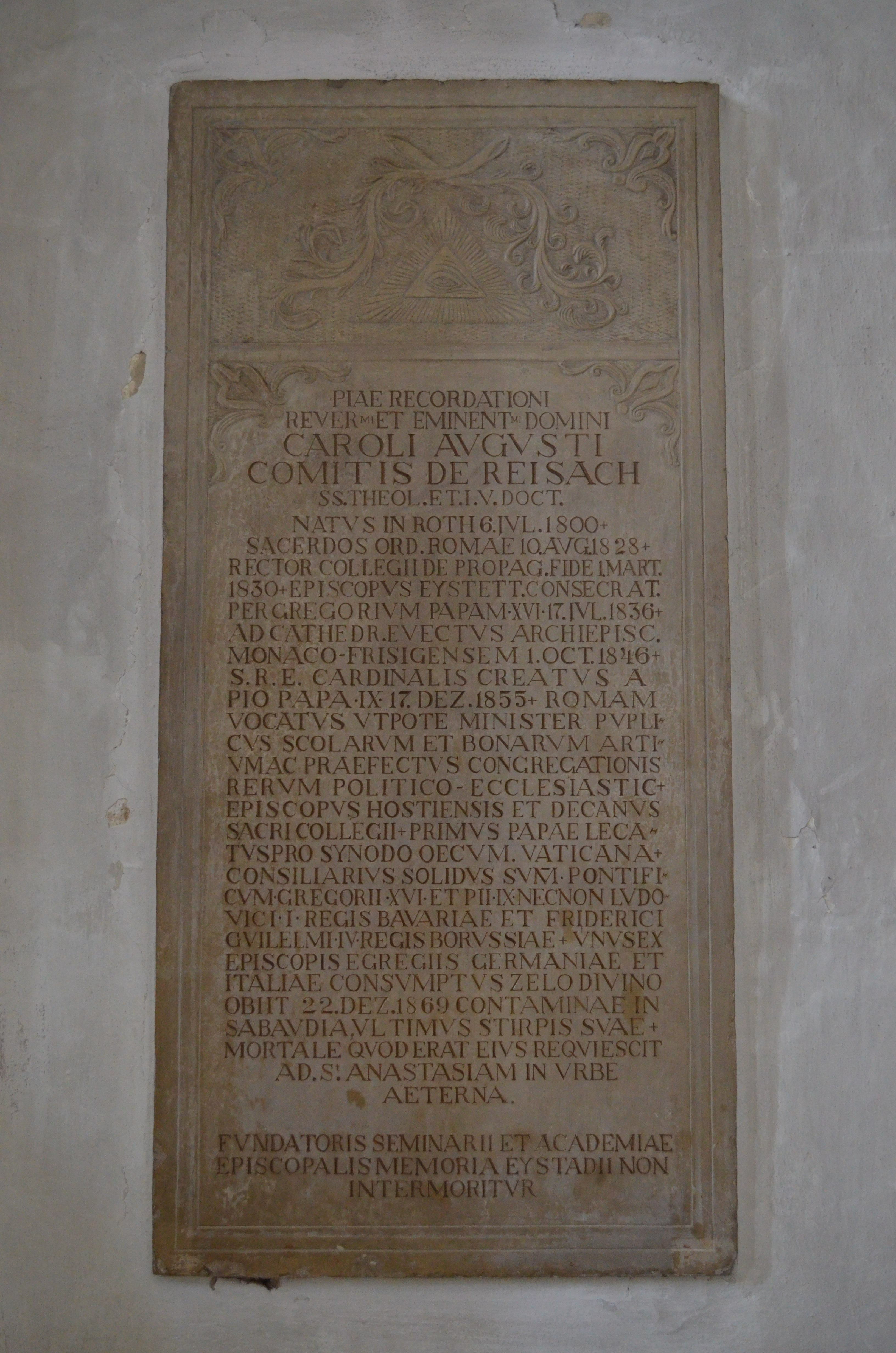 Grabinschrift ; Karl August von Reisach