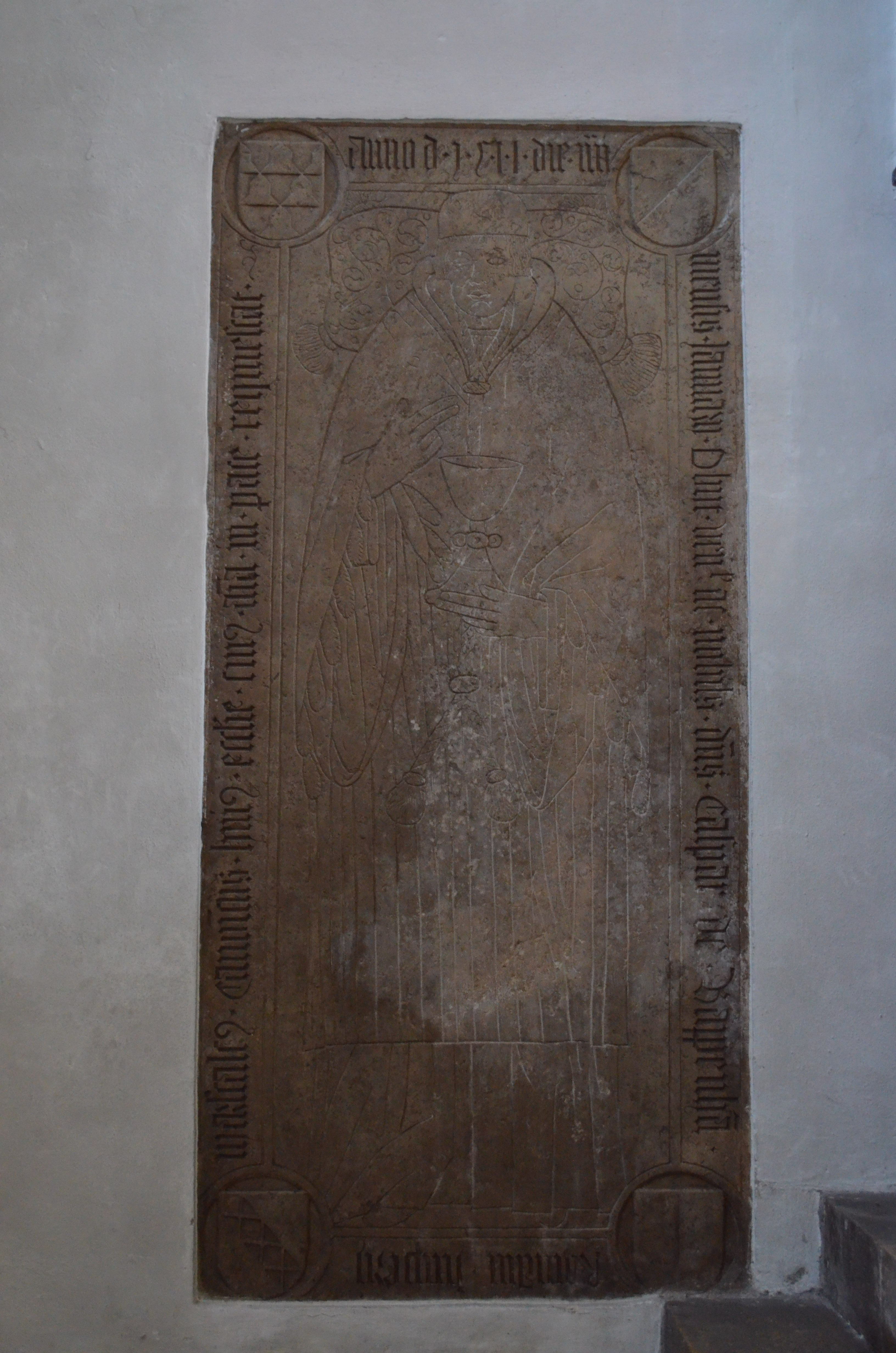 anno d. 1511 die iiii / ----- Ianuarii obiit ---- nobilis dus caspar de Bappenha. / Romanum (?) imperii / ---- in pace requiescat.