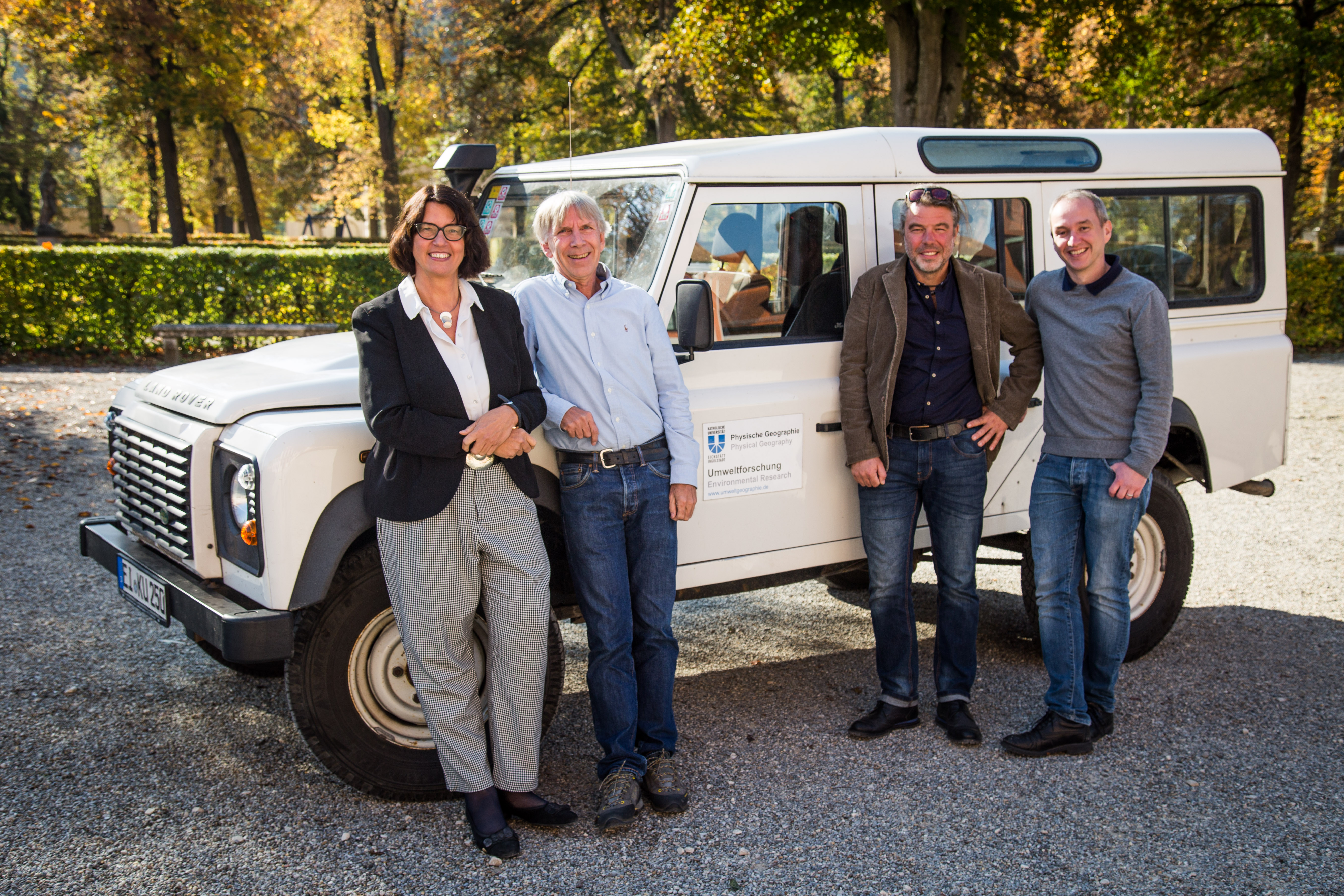 (v.l.) KU-Präsidentin Prof. Dr. Gabriele Gien mit dem Leiter der neuen DFG-Forschungsgruppe, Prof. Dr. Michael Becht, sowie Privatdozent Dr. Florian Haas und Privatdozent Dr. Tobias Heckmann. (Foto: Klenk/upd)