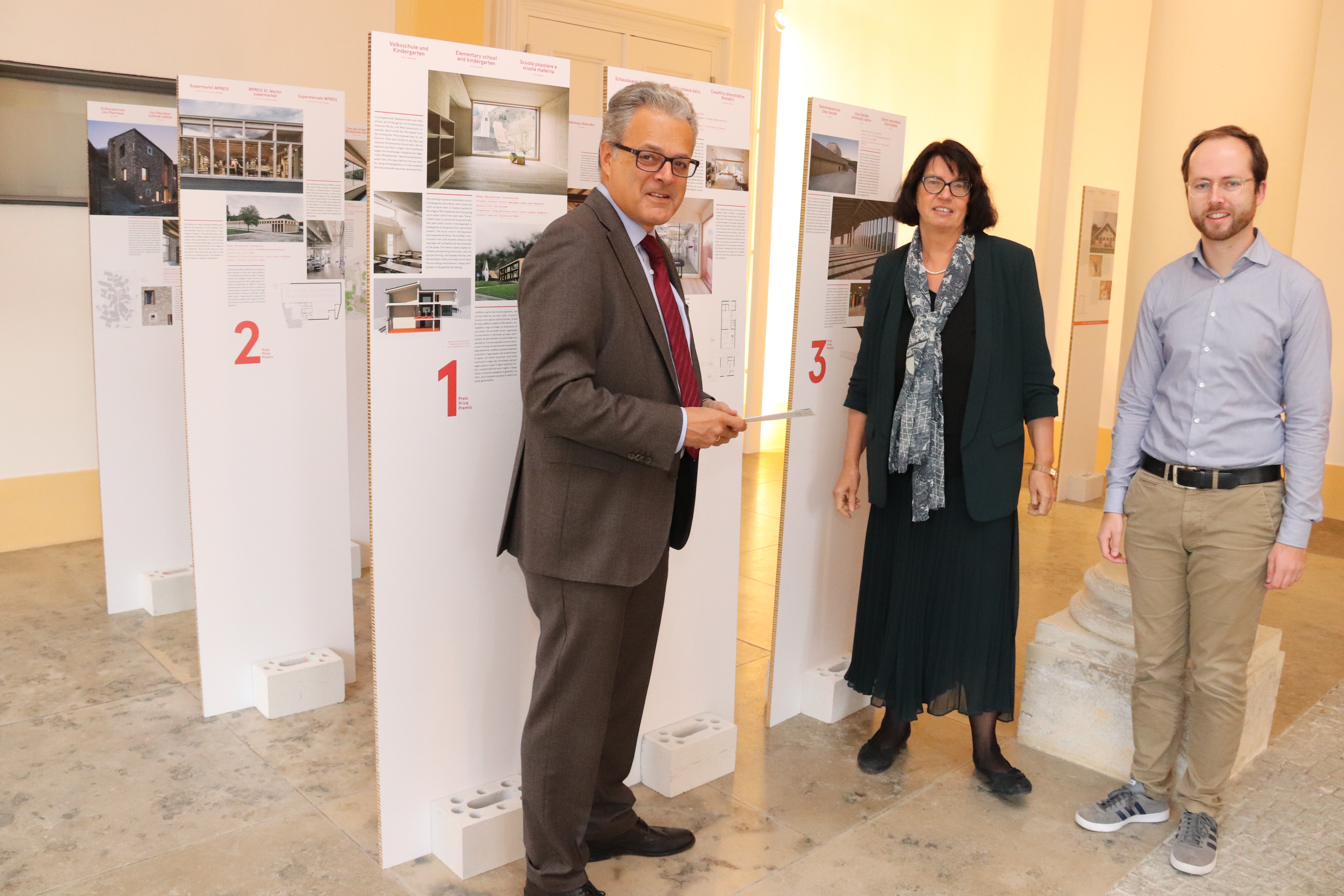 Wiederbelebte Dorfkerne, regionale und nachwachsende Materialien, sorgfältiger Umgang mit bestehender Baukultur – nachhaltige Architektur hat viele Gesichter. Auf Initiative des Lehrstuhls Tourismus der KU ist derzeit im Foyer der Sommerresidenz die Wanderausstellung „Constructive Alps“ zu sehen. Entstanden ist sie im Rahmen eines internationalen Wettbewerbes für nachhaltiges Sanieren und Bauen des Schweizer Bundesamts für Raumentwicklung ARE. (v.l.) Prof. Dr. Harald Pechlaner (Lehrstuhl To...    »