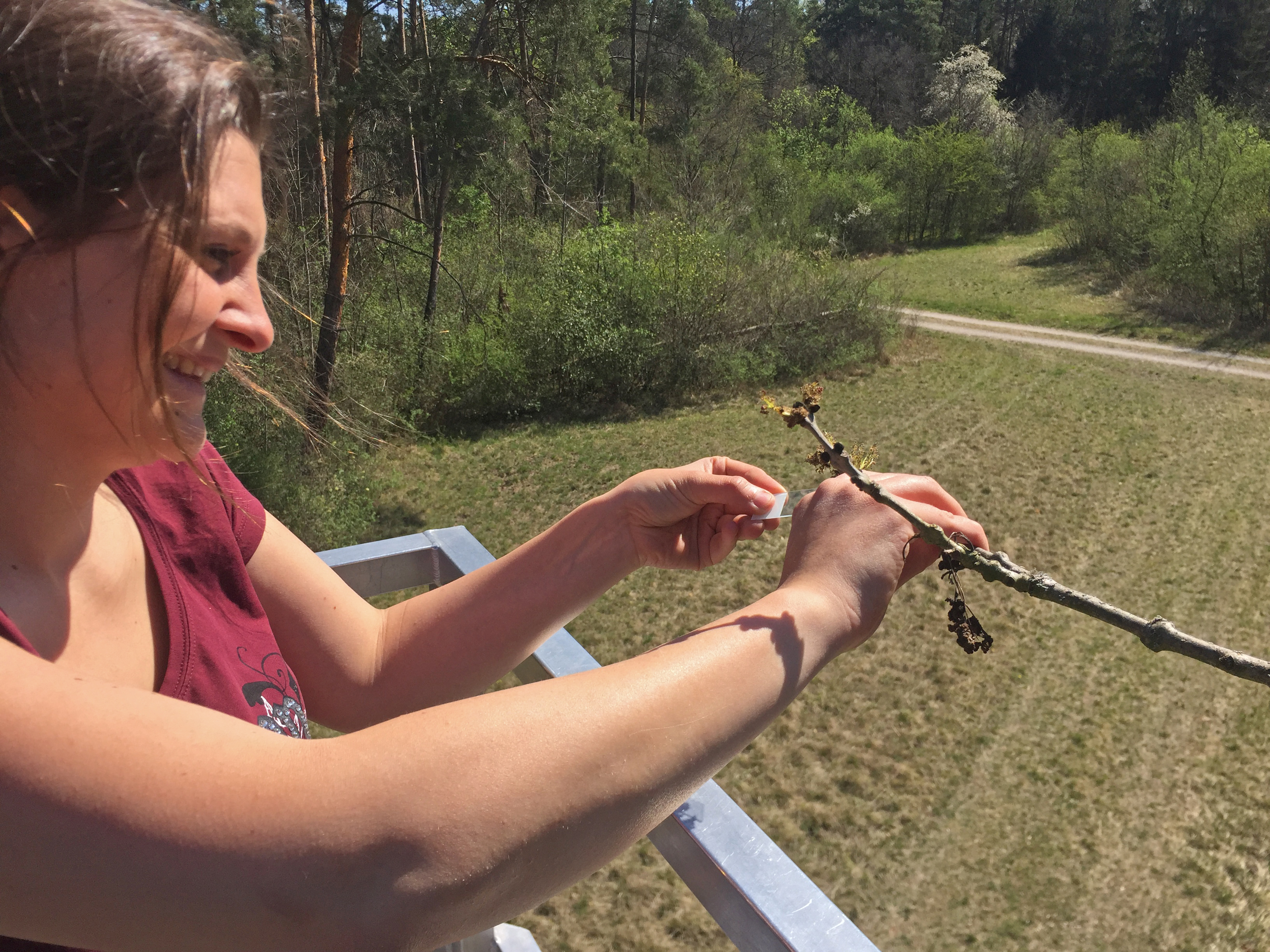 Wie lebensfähig die in den Baumkronen entnommenen Pollen der Eschen sind, wird die mikroskopische Auswertung der Proben in der kommenden Zeit zeigen. (Foto: Johanna Jetschni/upd)