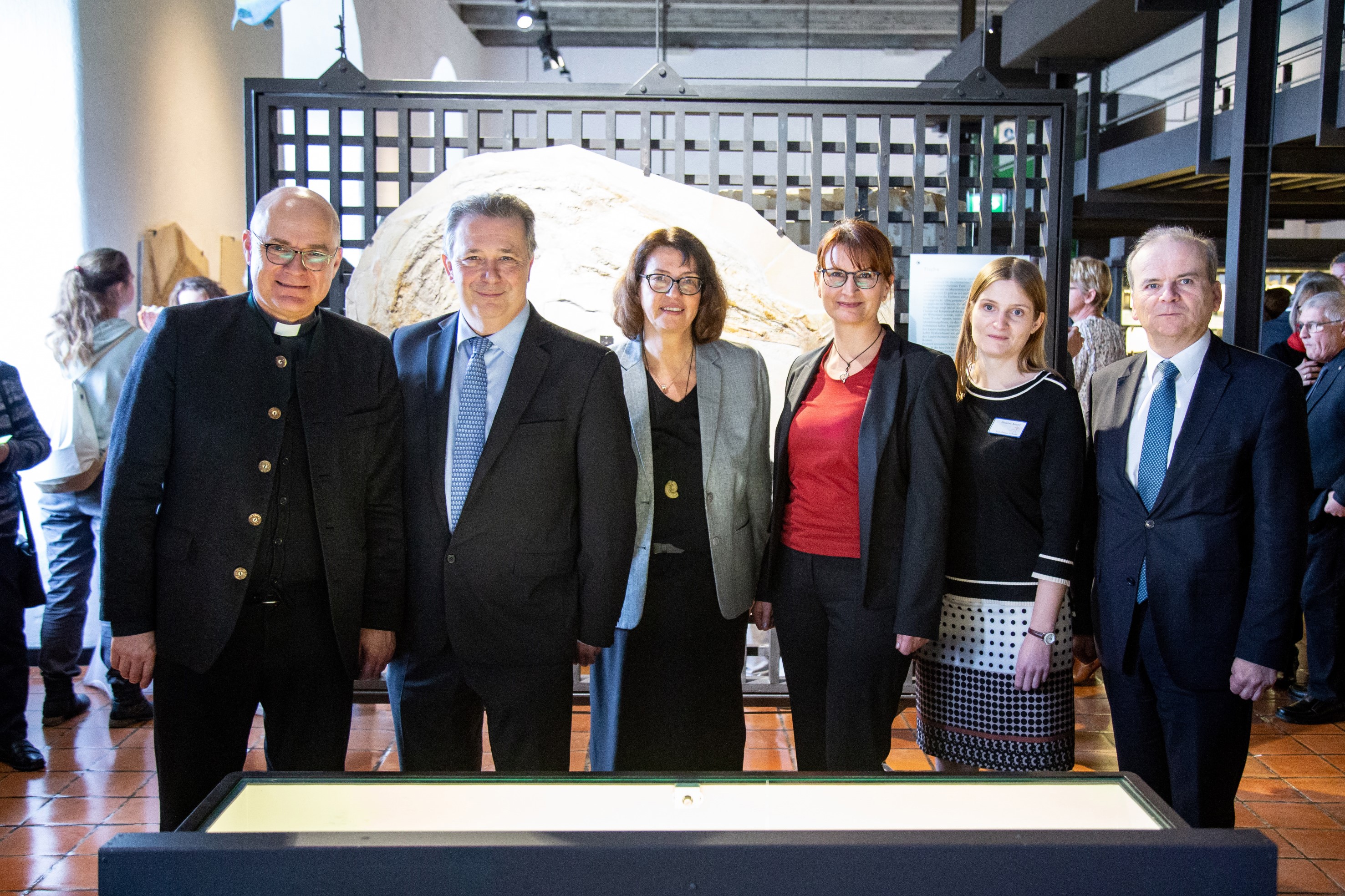 Freuten sich gemeinsam über die Wiedereröffnung des Jura Museums: Dr. Peter Beer (KU-Stiftungsratsvorsitzender), Prof. Dr. Gerhard Haszprunar (Generaldirektor der Staatlichen Naturwissenschaftlichen Sammlungen Bayerns), Prof. Dr. Gabriele Gien (Präsidentin der KU), Dr. Christina Ifrim (designierte Direktorin des Museums), Dr. Stephanie Armer (Geschäftsführerin des Museums) sowie Dr. Rolf-Dieter Jungk (Amtschef im Staatsministeriums für Wissenschaft und Kunst) (von links). (Fotos: Klenk/upd)